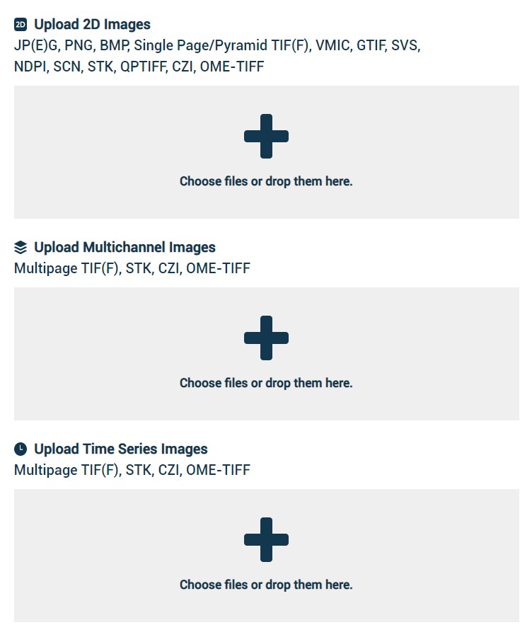 IKOSA Portal supports different microscopy image input types including 2D, time-series and multichannel.